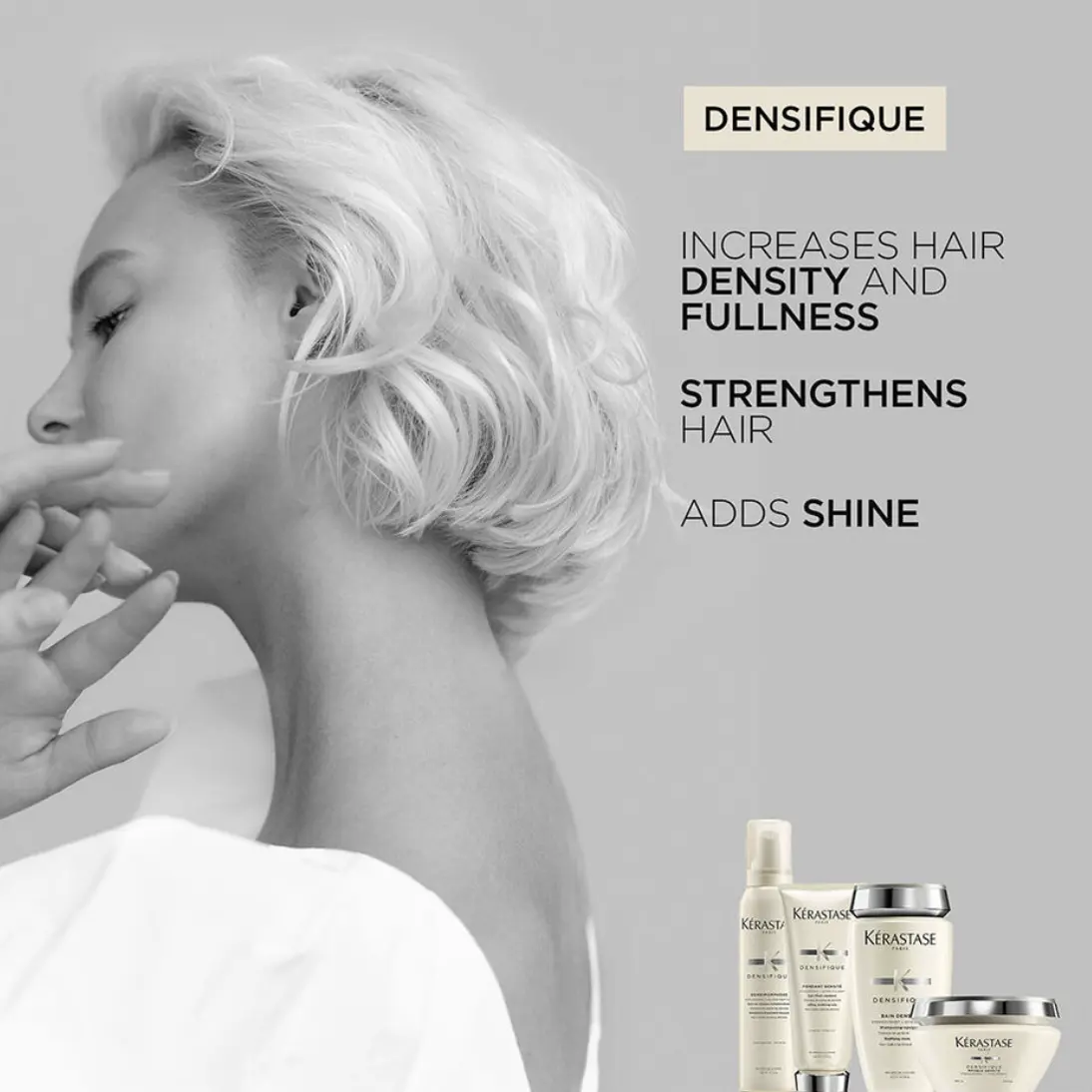 Thickening hair mousse with Hyaluronic Acid for thinning hair.